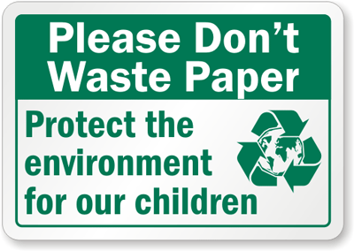 Energy Conservation Label: Please Don't Waste Paper, Protect The Environment For Our Children (with Recycle Symbol) LB-1428