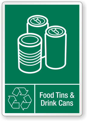 Reduce your trash load. Use a "Food Tins and Drink Cans" Recycling Labels. A bold graphic makes your point clearly and quickly.