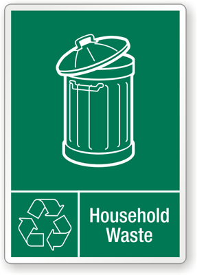 Avoid accidents and dangerous situations - prevention starts with reminding everyone to be careful and mind their surroundings. Use a "Household Waste" Graphic Recycling Label to keep recycling seperated.