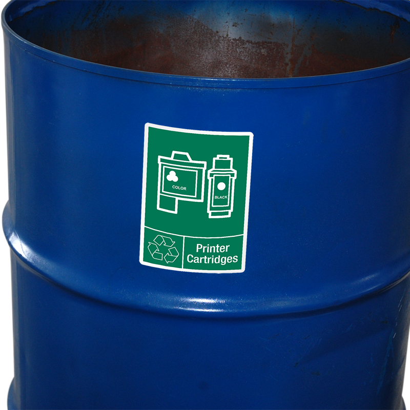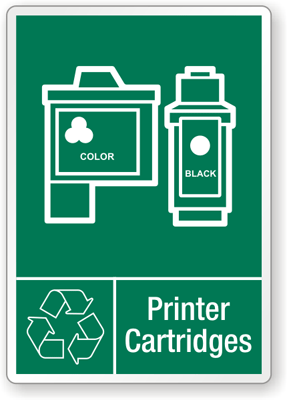 Posting recycling "Printer Cartridges" labels are vital to proper recycling. Order this graphic recycle label online to save time and money too.