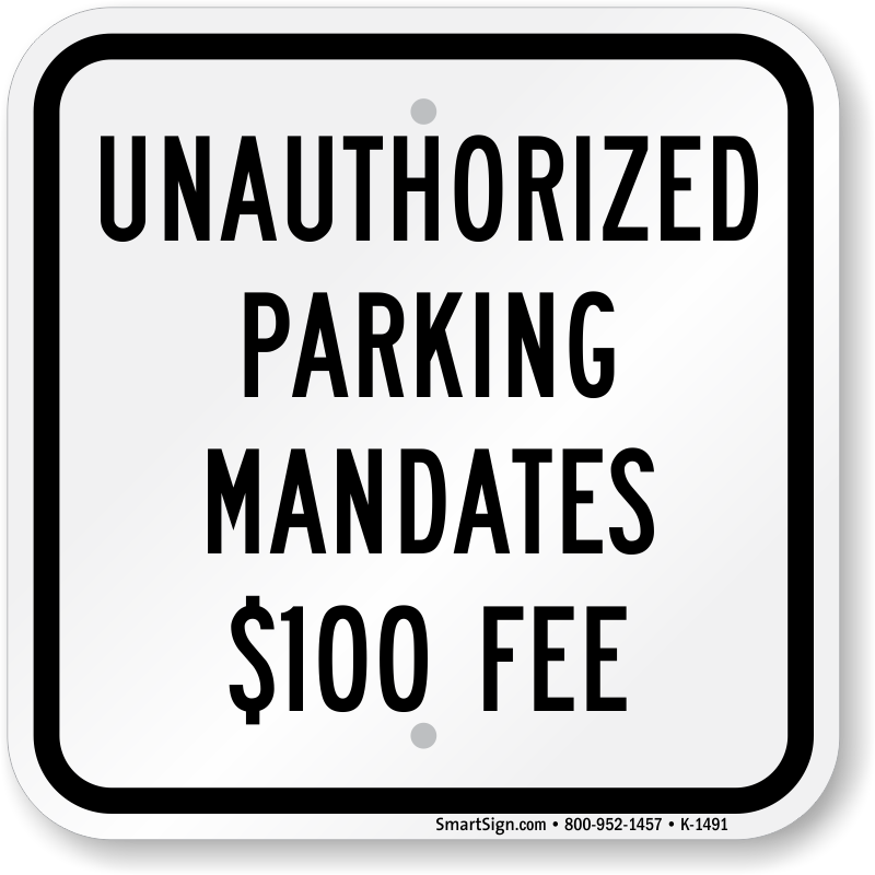 ADA Handicapped Sign: Unauthorized Parking Mandates $100 Fee K-1491 Learn More...