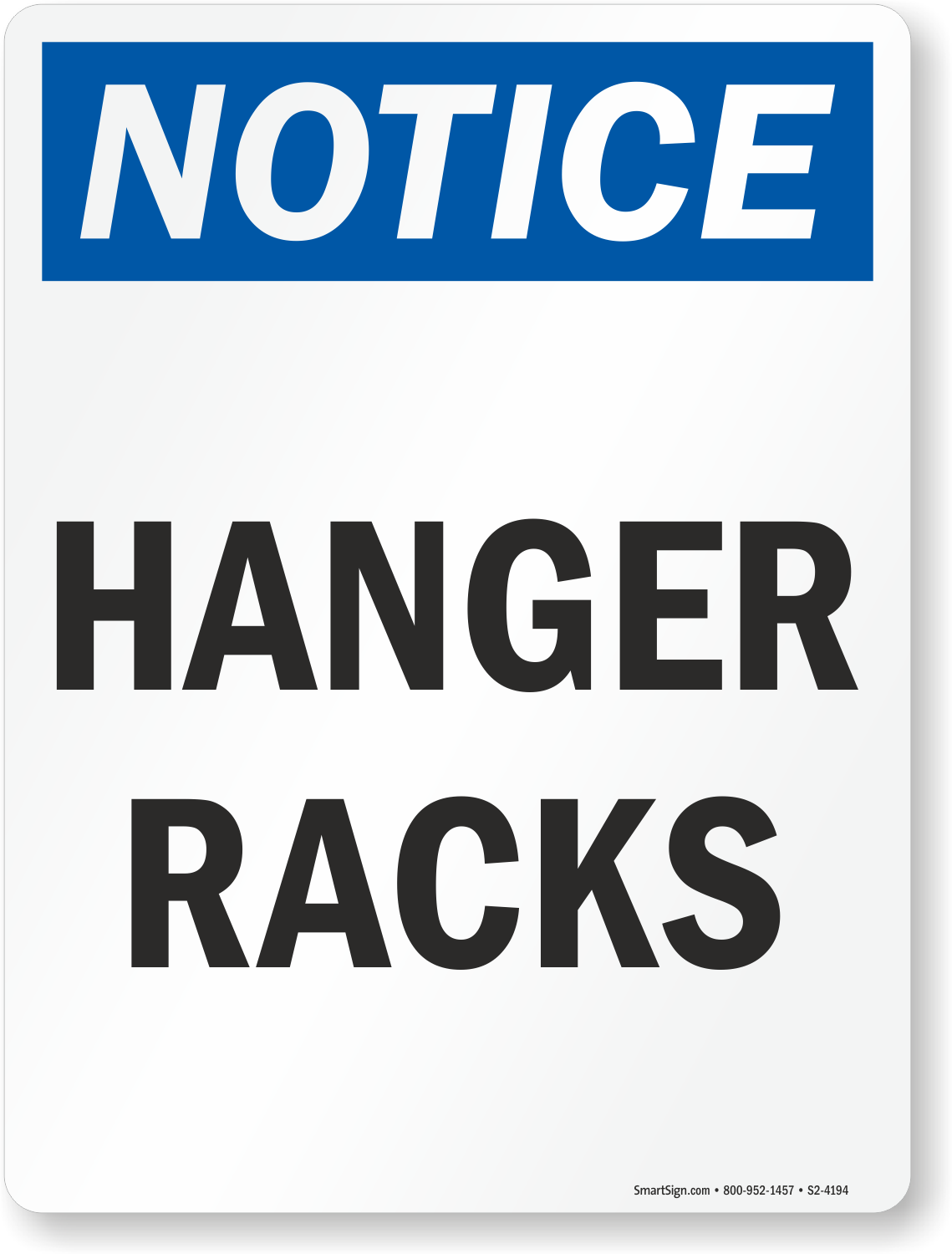 Designate "Hanger Racks" in your store with our bold and effective Notice Sign. Print is fade-proof and material offers durability for years.