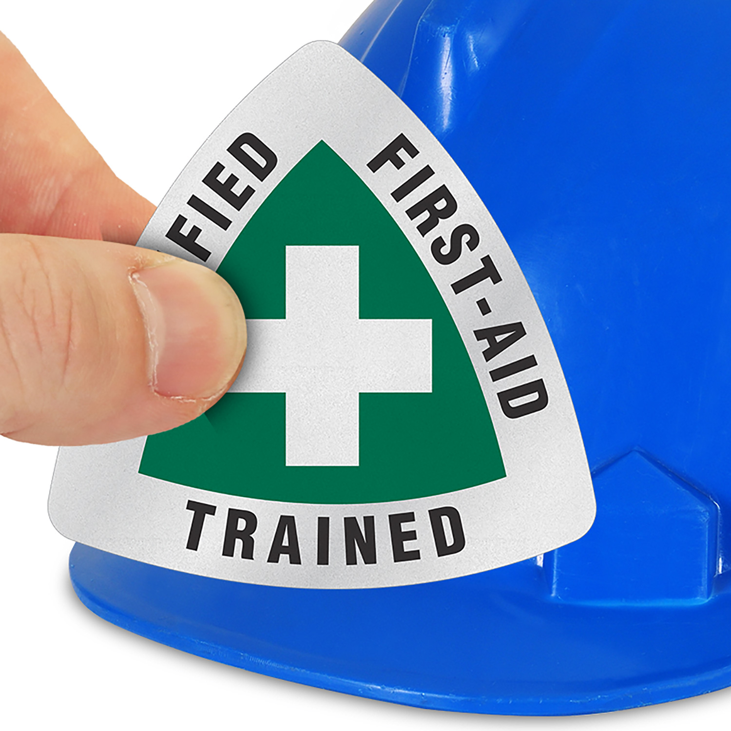 Identify your safety committee and trained first aid team with these durable and colorful "Certified First Aid Trained" Hard Hat Decals. Our Triangle Decals feature bold colors and easy to spot graphics - so that everyone can spot the message and underStand it easily.