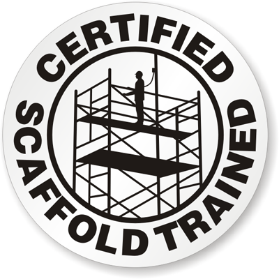 CERTIFIED SCAFFOLD TRAINED Hard Hat Decals are a great way to show which employees are trained to use scaffolding. Helmet decals make it easy to spot workers.