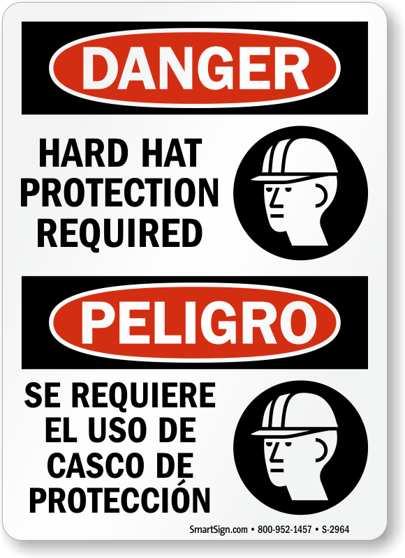 Before accessing the overhead hazard area in your facility, ensure that all workers adhere to the appropriate safety norms. This Bilingual OSHA Danger sign comes with clear graphics and reminds everyone that hard hat protection is required before entering the zone.