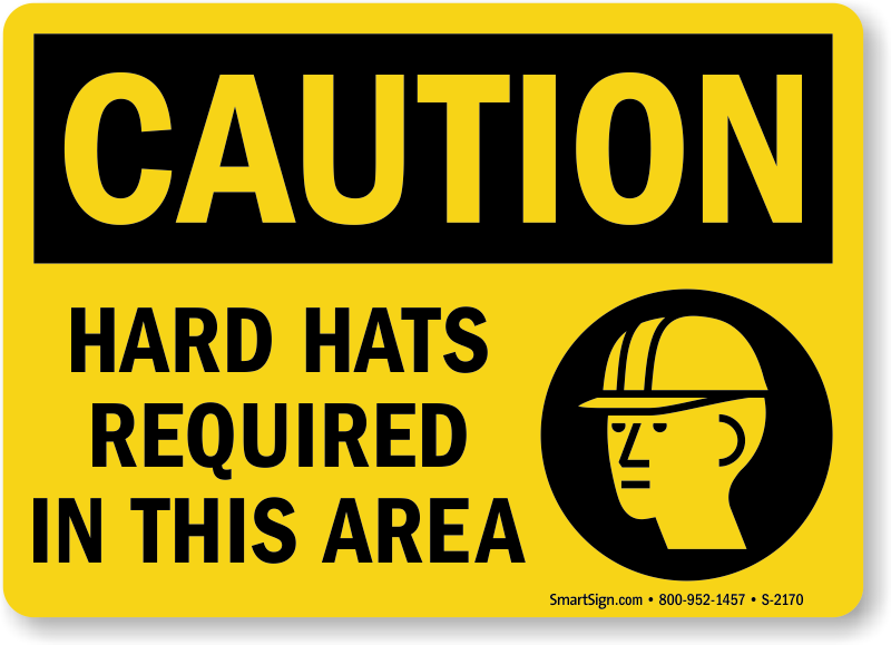 OSHA Caution Sign: Hard Hats Required In This Area (with Graphic)