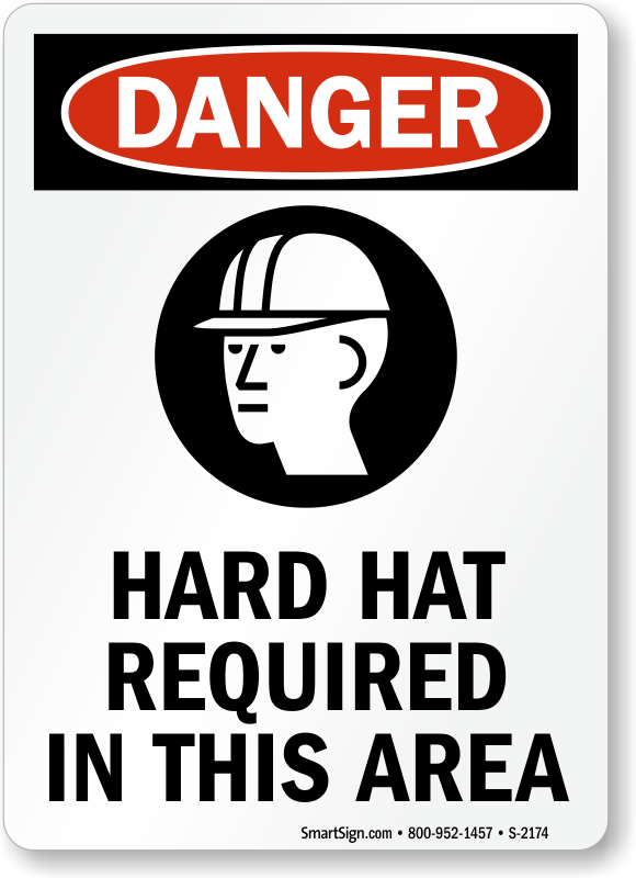 When wearing a hard hat is a must before accessing hazardous areas, install this OSHA Danger Sign to keep all workers aware.