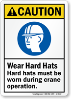 With this official ANSI Caution Sign, ask crane operators to wear hard hats at all times during crane operation.
