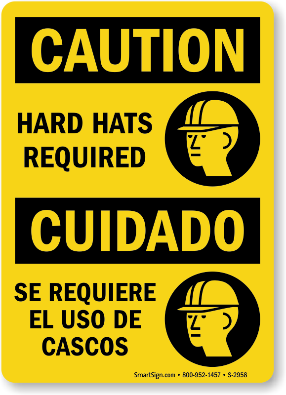 The best way to protect your workforce against overhead hazards is by ensuring that all workers wear hard hats before accessing the area. This Bilingual OSHA Caution sign not only effectively communicates your message, but also caters to both English and Spanish speakers.