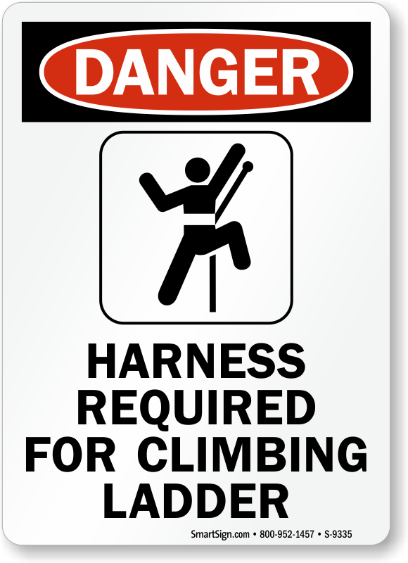 Workers are exposed to many fall hazards in construction industries. Make safety a priority with this 'Harness Required For Climbing Ladder' sign.