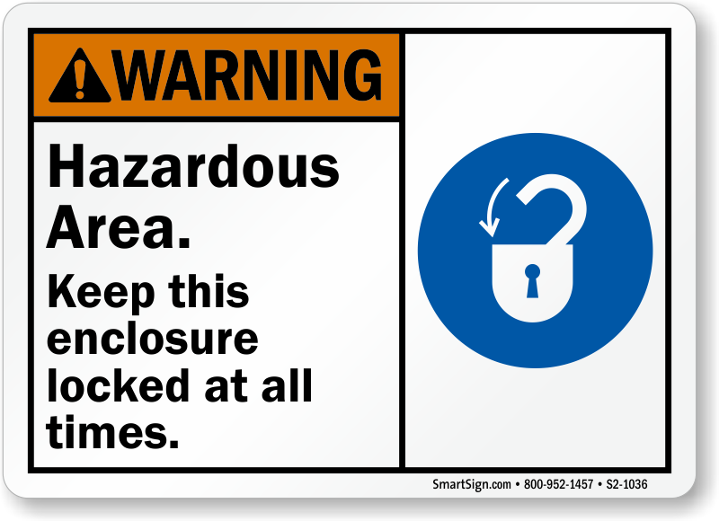 Mark the hazardous area at your facility with this ANSI Warning Sign and inform your staff and visitors to keep the enclosure locked at all times.
