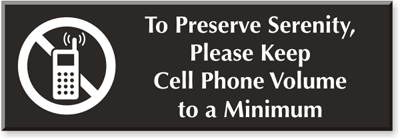 Select-a-Color Engraved Sign: To Preserve Serenity, Please Keep Cell Phone Volume To a Minimum (with Graphic) SE-2546