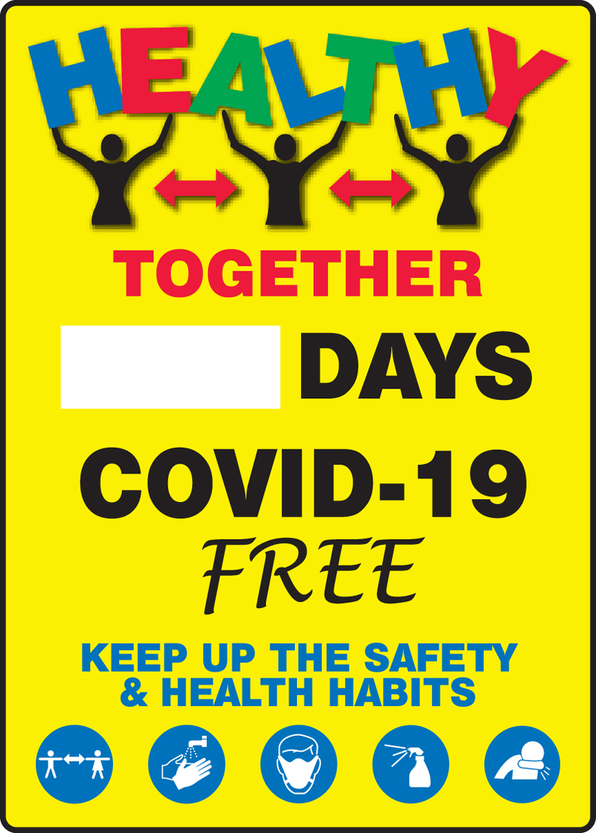 Dry erase Mark-a-Day™ Safety Scoreboards provide a visual record of days without confirmed case. Promote healthy habits that prevent the spread of the virus!