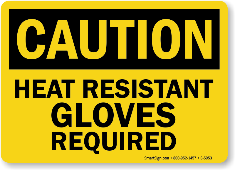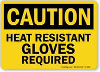 Adhering to proper PPE is a must while accessing hazardous areas. Inform all employees that heat resistant gloves are required before entering this area with a bold and effective OSHA Caution Sign.
