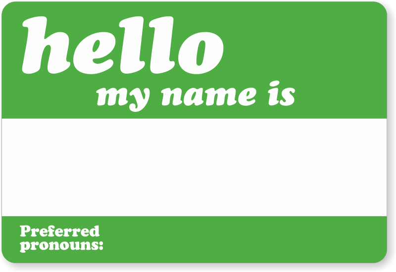 Introduce yourself. The footer on the label lets everyone write in their preferred pronouns. Take a small step to help students, employees, or conference attendees feel more comfortable.