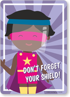 Cultivate and promote safe habits in kids with this hero sign that reminds children about covering their faces.