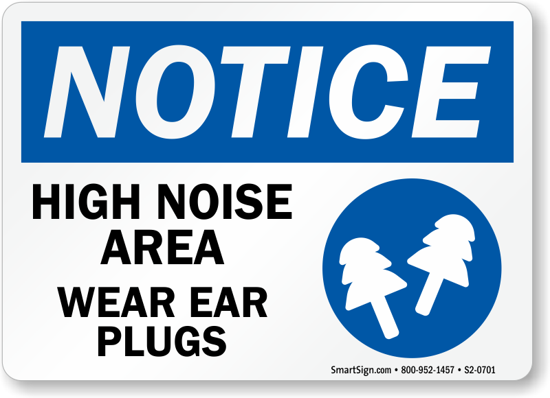 OSHA Notice Sign: High Noise Area Wear Ear Plugs (With Graphic)
