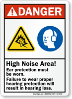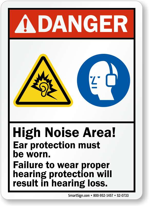 ANSI Danger Sign: High Noise Area, Failure To Wear Hearing Protection Will Result In Hearing Loss (With 2 Graphics) S2-0733