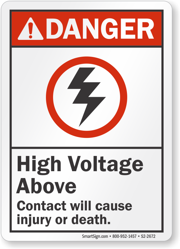 ANSI Danger Sign: High Voltage Above, Contact Will Cause Injury Or Death