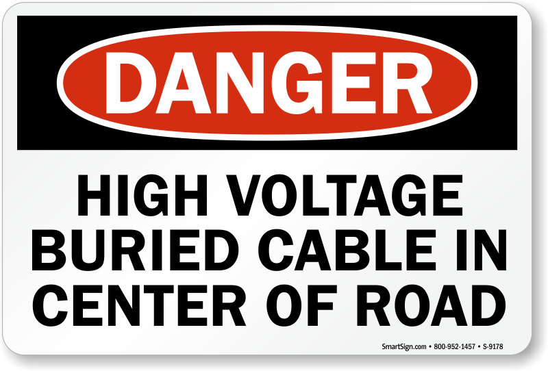 OSHA Danger Sign: High Voltage Buried Cable In Center Of Road S-9178 Learn More...