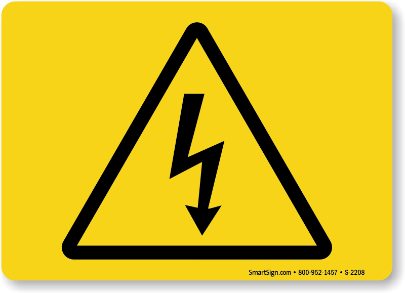 Be prepared for the risks of high voltage. Use a "electric symbol (black)" sign. Improve safety - with a sign!