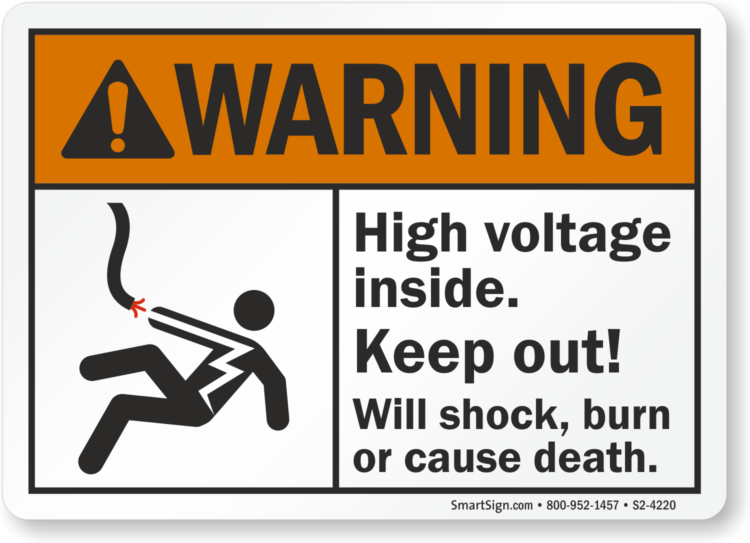 ANSI Warning Sign: High Voltage Inside, Keep Out S2-4220
