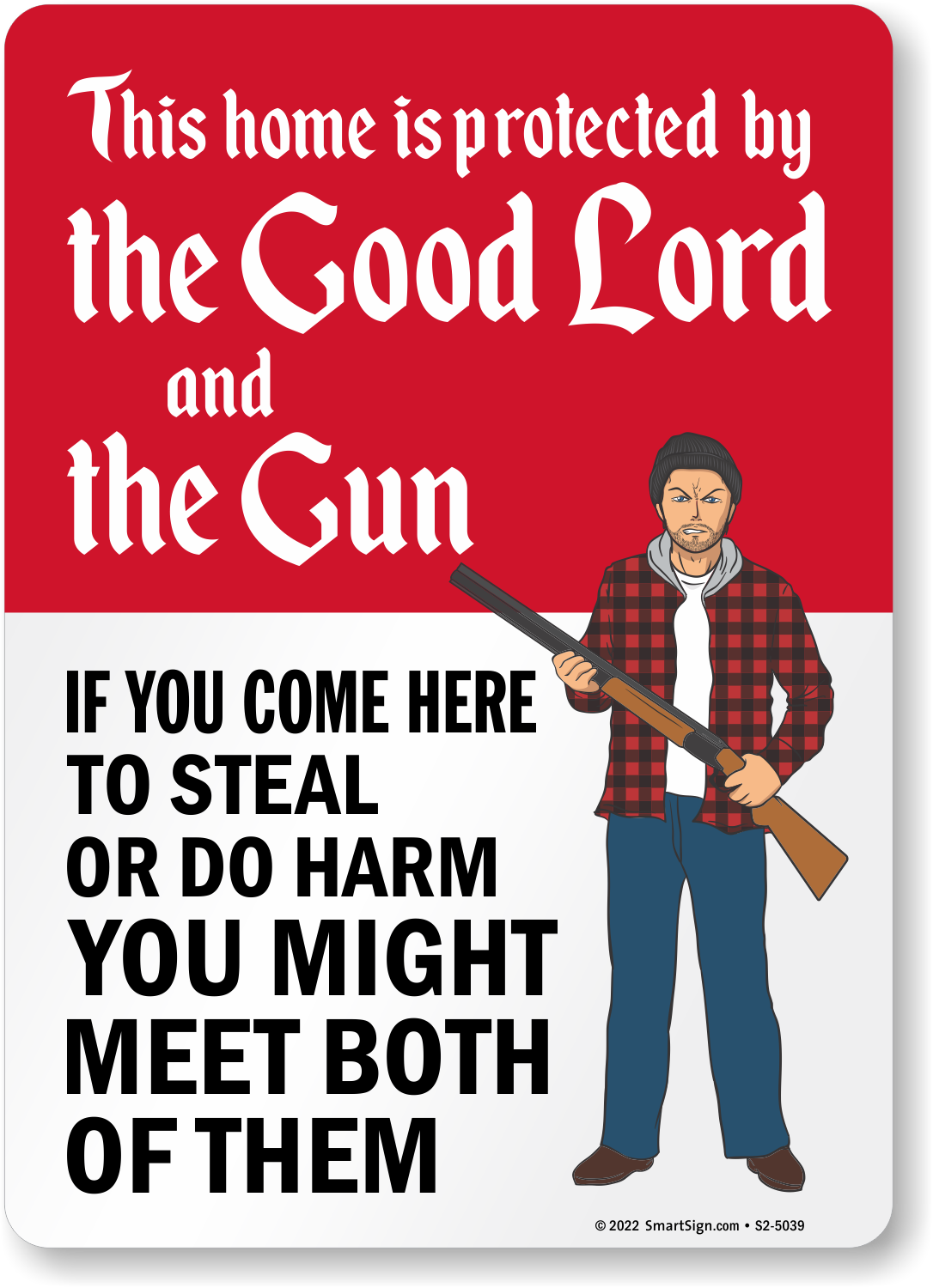 Funny No Trespassing Sign: Home Is Protected By The Good Lord And The Gun S2-5039