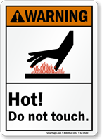 ANSI Warning Sign: Hot Do Not Touch (With Hand Burn Graphic)