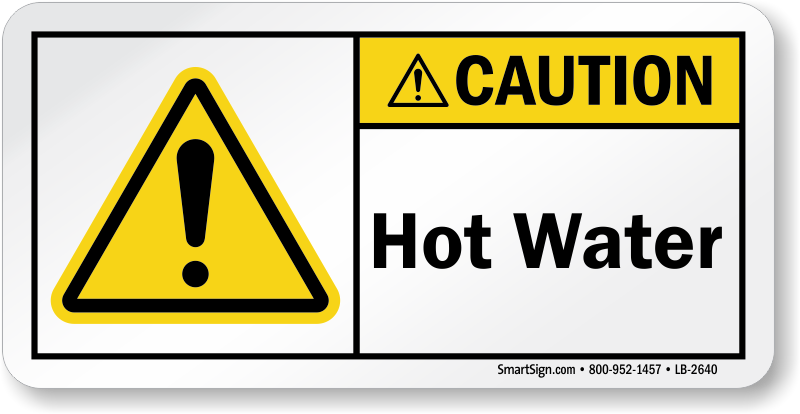Prevent accidental injuries and make sure that everyone stays cautious of hot water in your facility. This ANSI Caution label will help communicate the message.