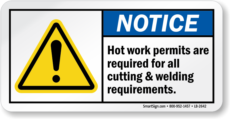 Set a benchmark for safety at your work site. Do not allow workers to perform hot work without a permit and comply with safety regulations. This ANSI Notice Label is ideal for drilling and servicing operations.