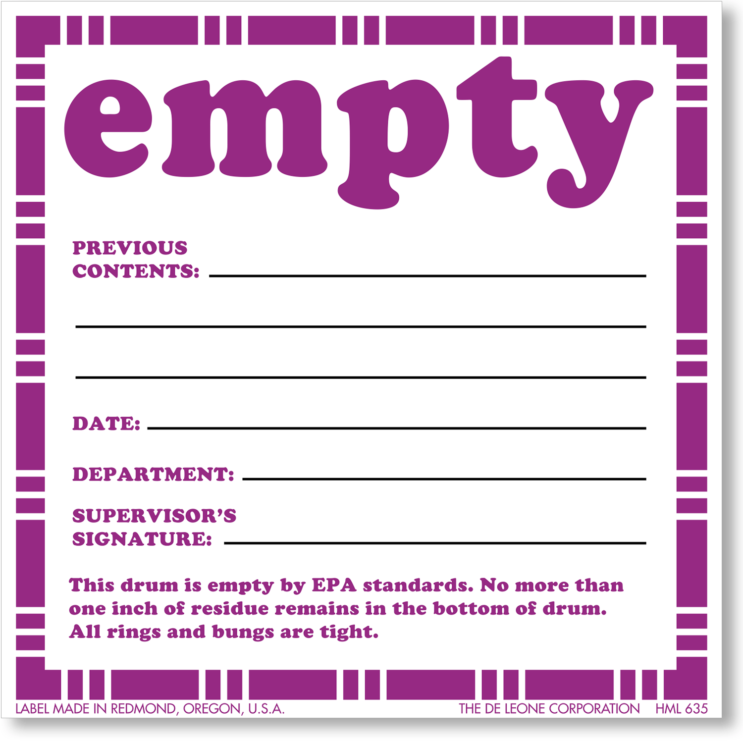 - Use these labels on anything that is empty and clean so that employees know it is safe.