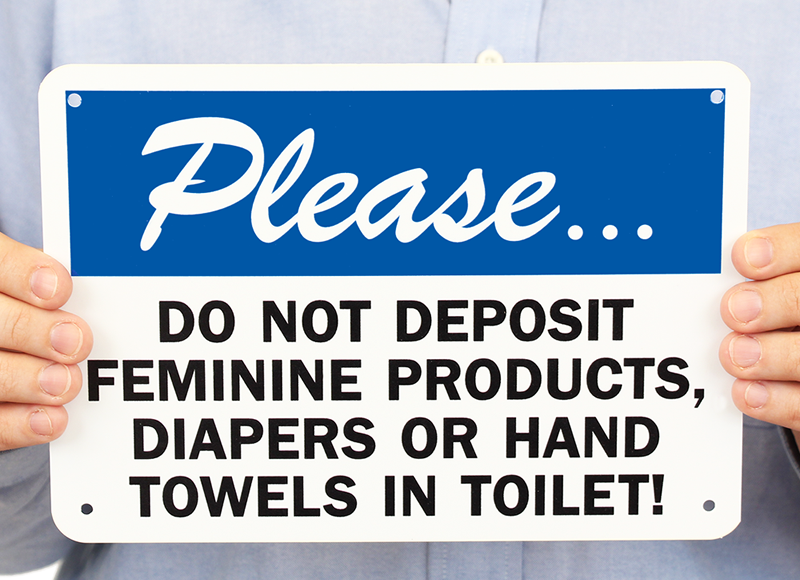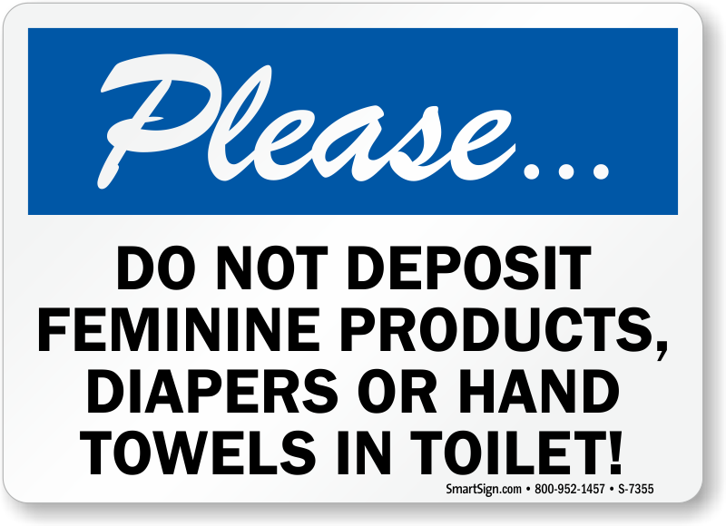 Feminine Hygiene Products Sign: Please, Do Not Deposit Feminine Products, Diapers Or Hand Towels In Toilet S-7355