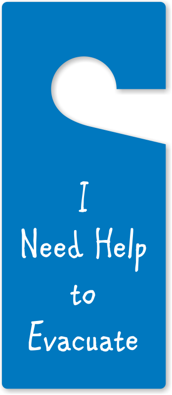 Need help with evacuation? Deliver your message across with this simple “I need help to evacuate” 2 sided door hang tag.