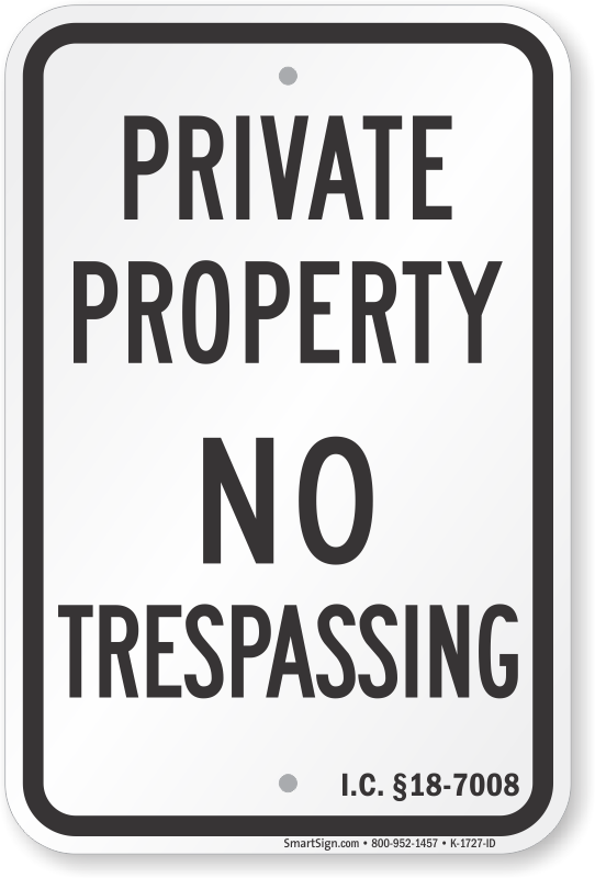 Idaho No Trespassing Sign: Private Property – I.C. §18-7008 K-1727-ID Learn More...