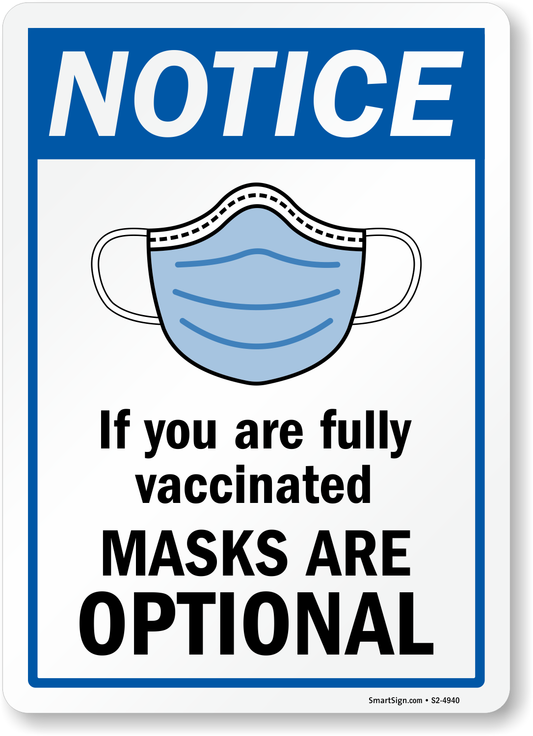 Face Mask Sign: Notice - If You Are Fully Vaccinated, Masks Are Optional S2-4940
