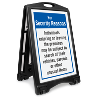 A-Frame Portable Sidewalk Security Checkpoint Sign: For Security Reasons Individuals Entering Or Leaving The Premises May Be Subject To Search