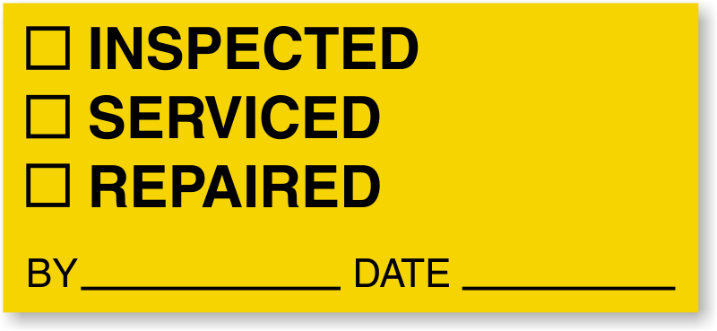 Apply this label and indicate whether the product is inspected, serviced or repaired by checking the checkbox in front of each one. Label also has fields to mention details of the function.