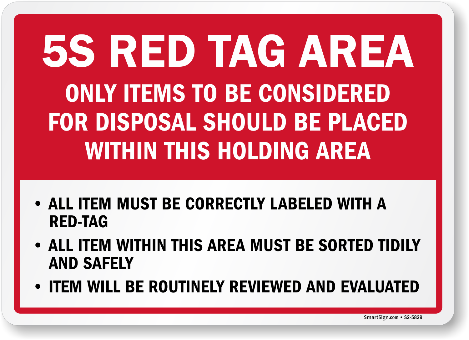 Keep disposal items in check with this 5S Red Tag Area sign, ensuring only labeled items are placed in the holding area.