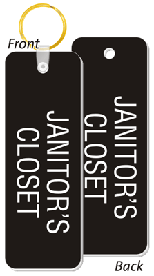 Keep track of your maintenance room keys with this 2-sided Janitor's closet keychain. The large sized key ring can hold all the keys together.