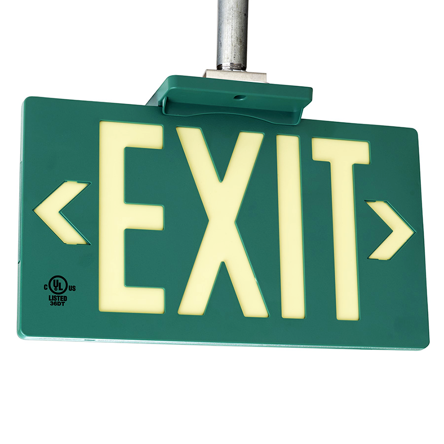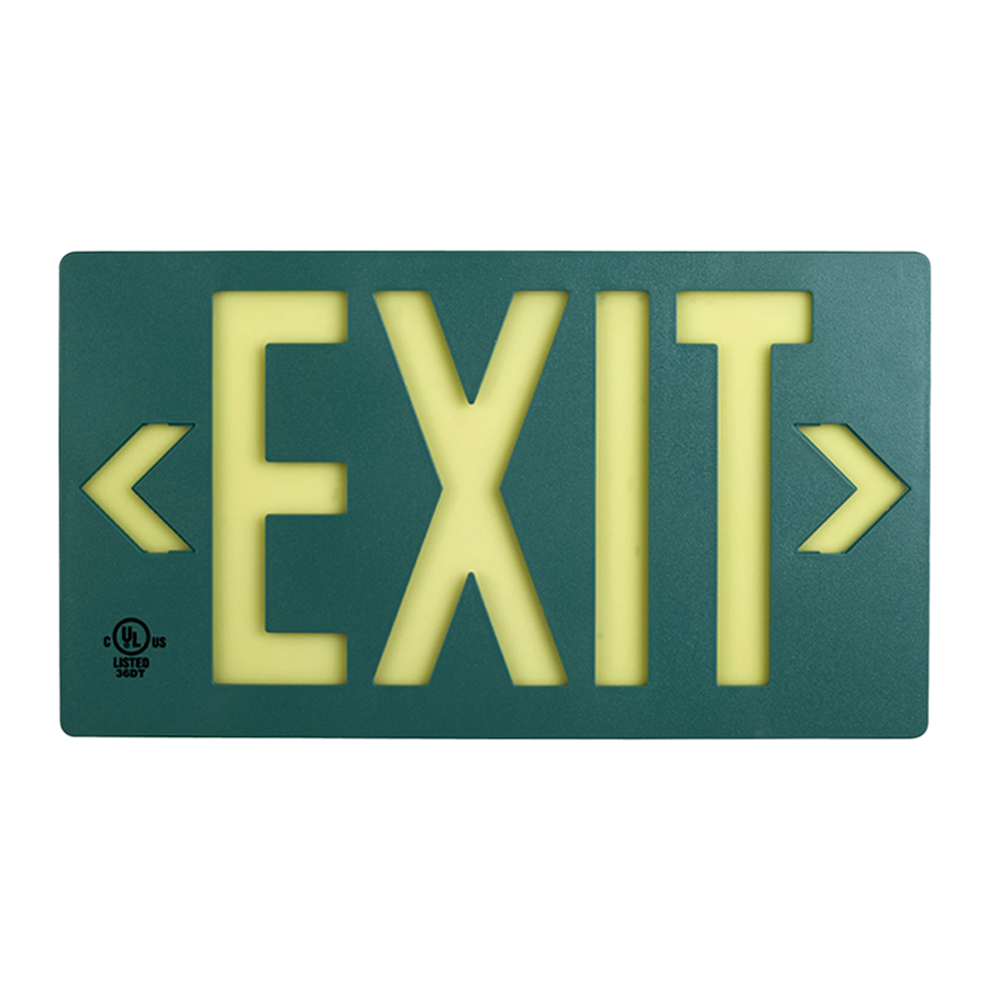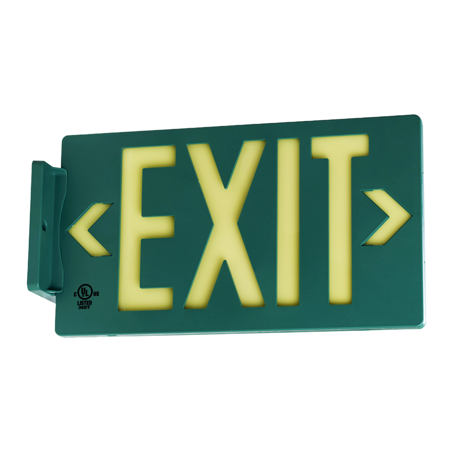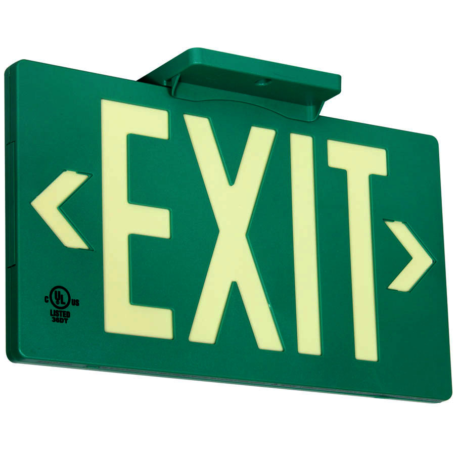 Molded Plastic Exit Sign: Photoluminescent Green Molded Plastic Exit Sign with Universal Mount Canopy: Visible at 50 feet or 100 feet EXIT-7001