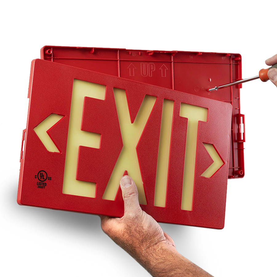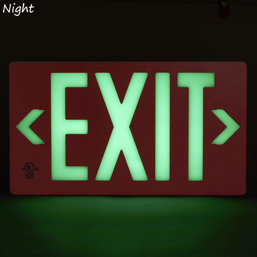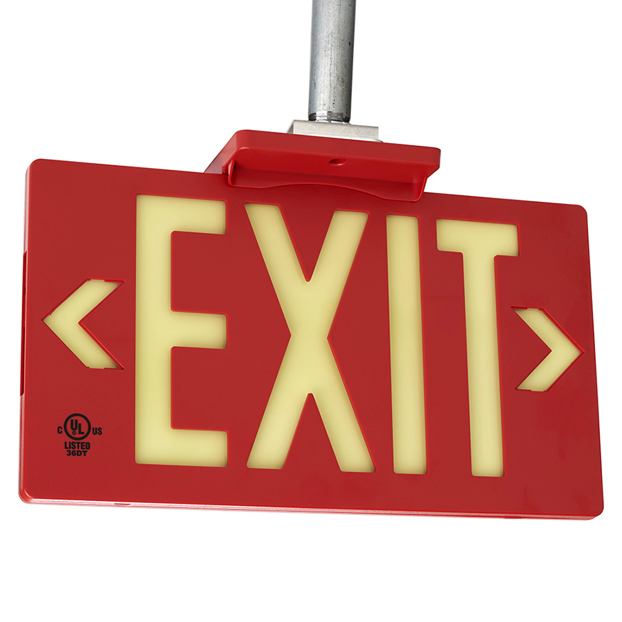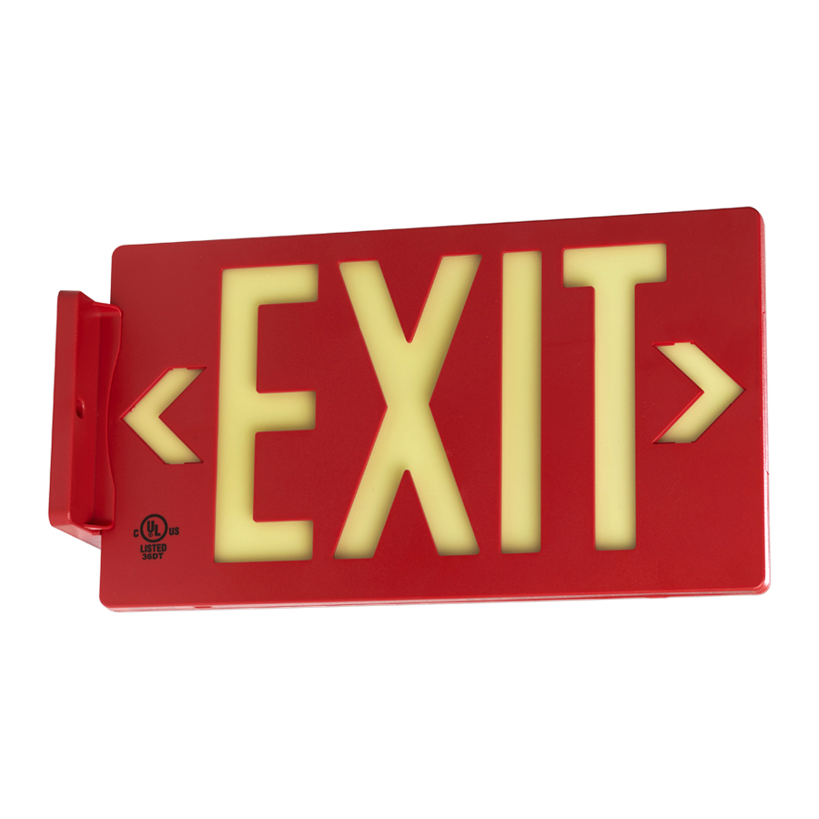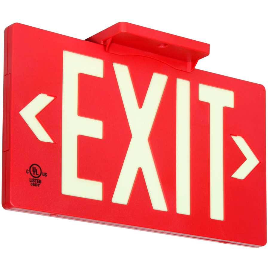 Molded Plastic Exit Sign: Photoluminescent Red Molded Plastic Exit Sign with Universal Mount Canopy: Visible at 50 feet or 100 feet EXIT-7002