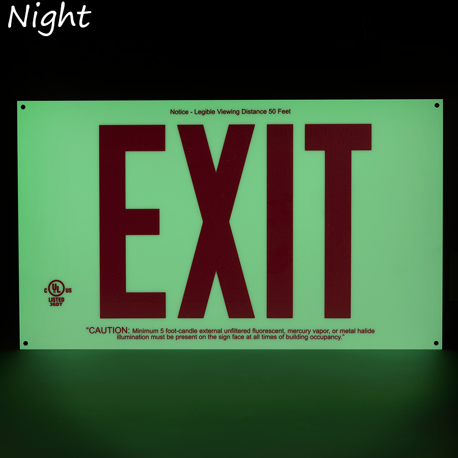 Unframed Exit Sign: Photoluminescent Red Acrylic Exit Sign with Pre-drilled Holes: Visible at 50 feet EXIT-7013
