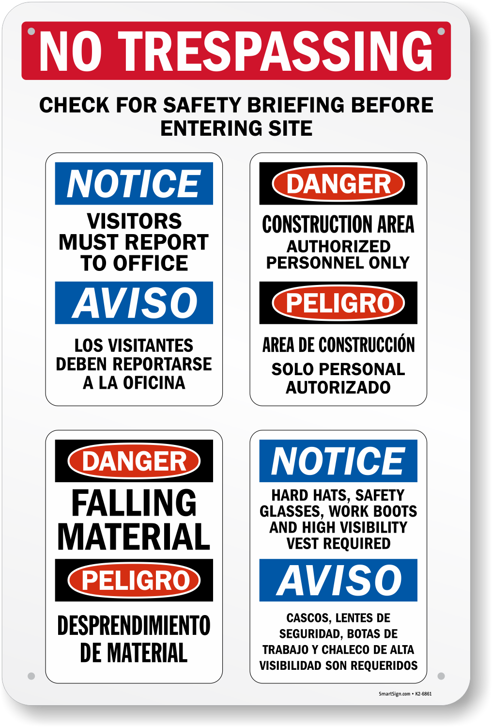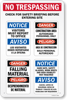 A Jobsite Construction Safety Sign uses bullet points to make workers, contractors, etc. more aware. This sign emphasizes reporting to office, falling material, PPE, and authorized personnel only.