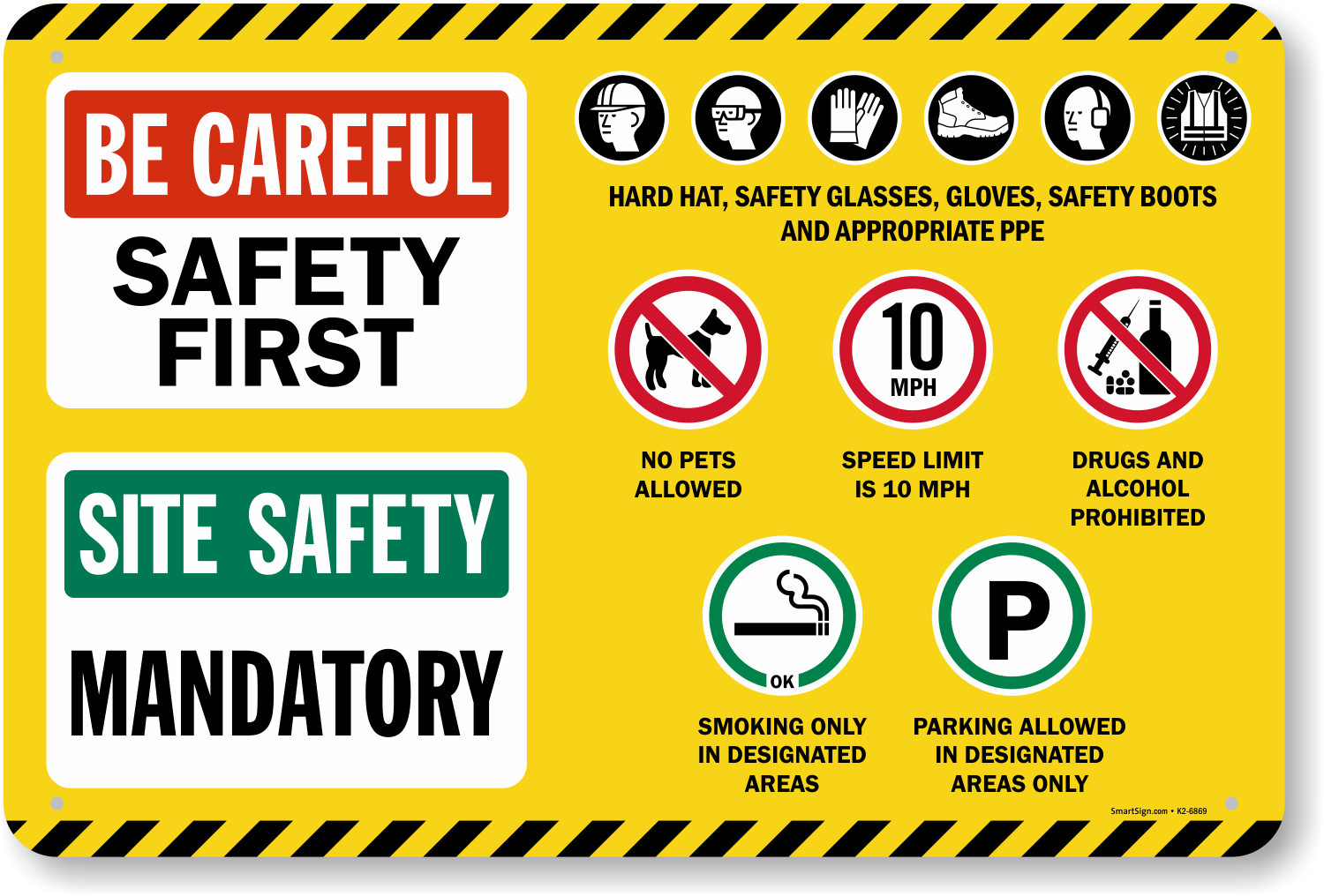 Construction Site Sign Panel: Jobsite Safety - Combined Construction Site, Safety First, Mandatory K2-6869 Learn More...