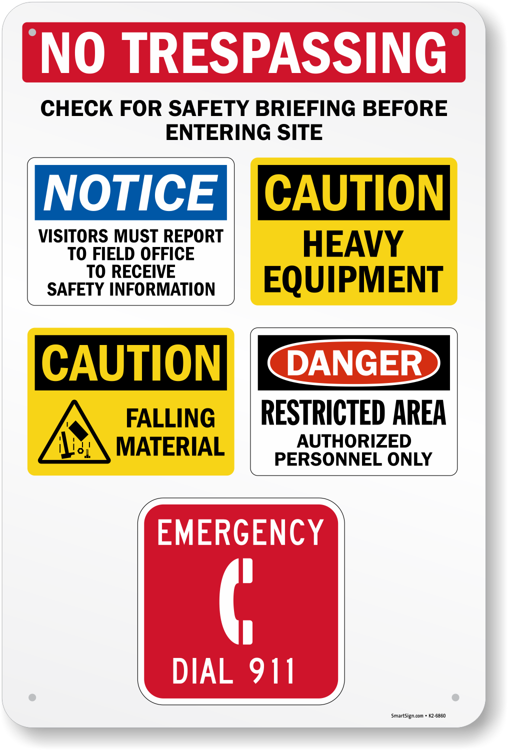 A Jobsite Construction Safety Sign uses bullet points to make workers, contractors, etc. more aware. This sign emphasizes emergency dial 911, caution for heavy equipment, and falling material.