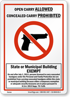 Use this Kansas Gun Law Sign to prohibit concealed carry of handguns inside state or municipal buildings. Sign helps you comply with K.S.A 2013 Supp. 75-7c20.