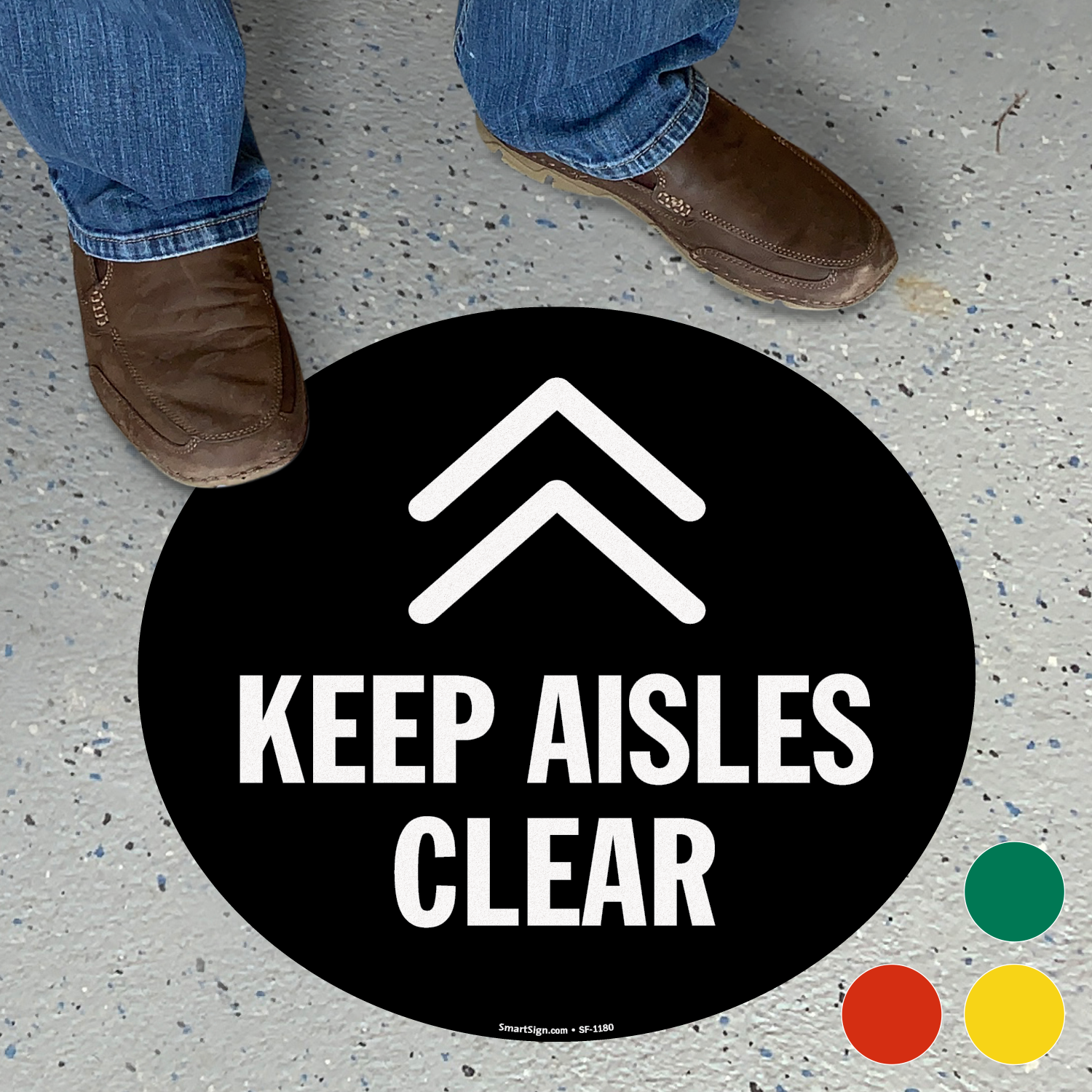 This Keep Aisles Clear Sign also has arrowheads pointing in forward direction.