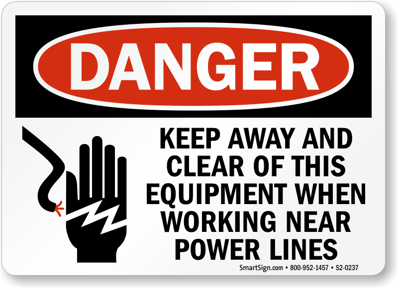 OSHA Danger Sign warns workers of electrical shock from an equipment while working near power lines.