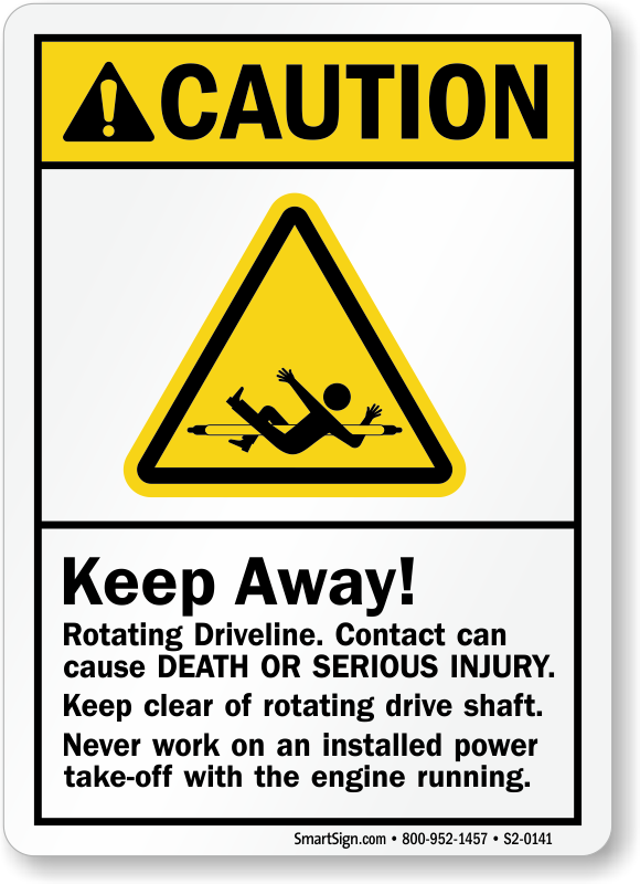 Rotating drivelines of the vehicle can entangle unaware workers and cause death or serious injury. Help them to stay clear with this ANSI Caution Sign.