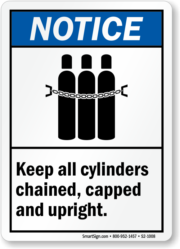 Ensure a safe environment at your facility. Use this ANSI Notice Sign to remind workers to keep the cylinders chained, capped and upright at all times.